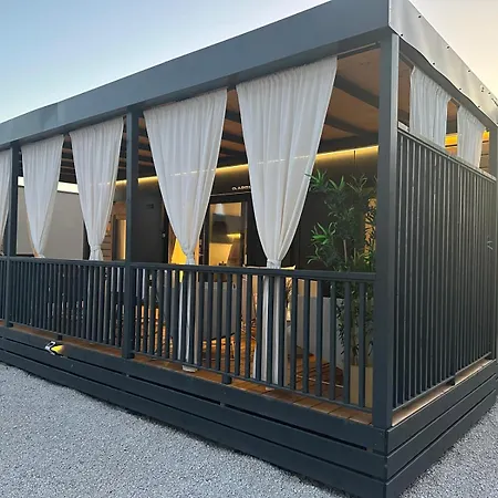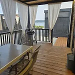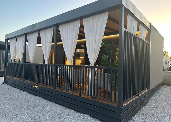 Mobile Home Sea Breeze ligt op 25-minuten wandelafstand van Mala Bisaga en nodigt gasten uit om te ontspannen op een terras.